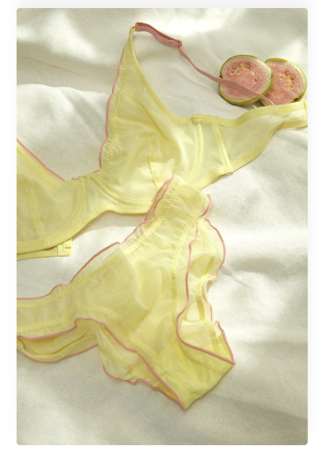 Sheer lingerie is a great way to add some sex appeal to a more casual look. Softer pastel colors like this add a more innocent and feminine touch as well.